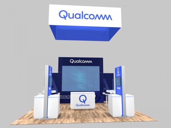 Light and movement attract attention on the trade show floor. Smart exhibitors use that to their advantage with compelling large format videos using LED video tiles and monitors. The RE-9221 is a rental island design using modular components to achieve an upscale, multi-functional exhibit in a 400 sq. ft space.