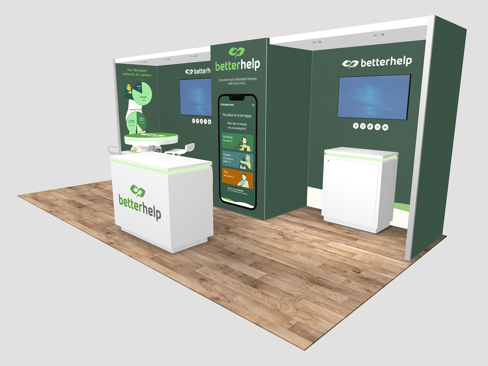 Many exhibitors blend rental components with their existing exhibit. For example, your exhibit may include the main structure, like a tower and a conference room. Renting the workstations, kiosks, or other accessories will allow you to mix and match components depending on your show requirements. In addition, it allows you to “test-drive” components to see if there’s a long-term need.