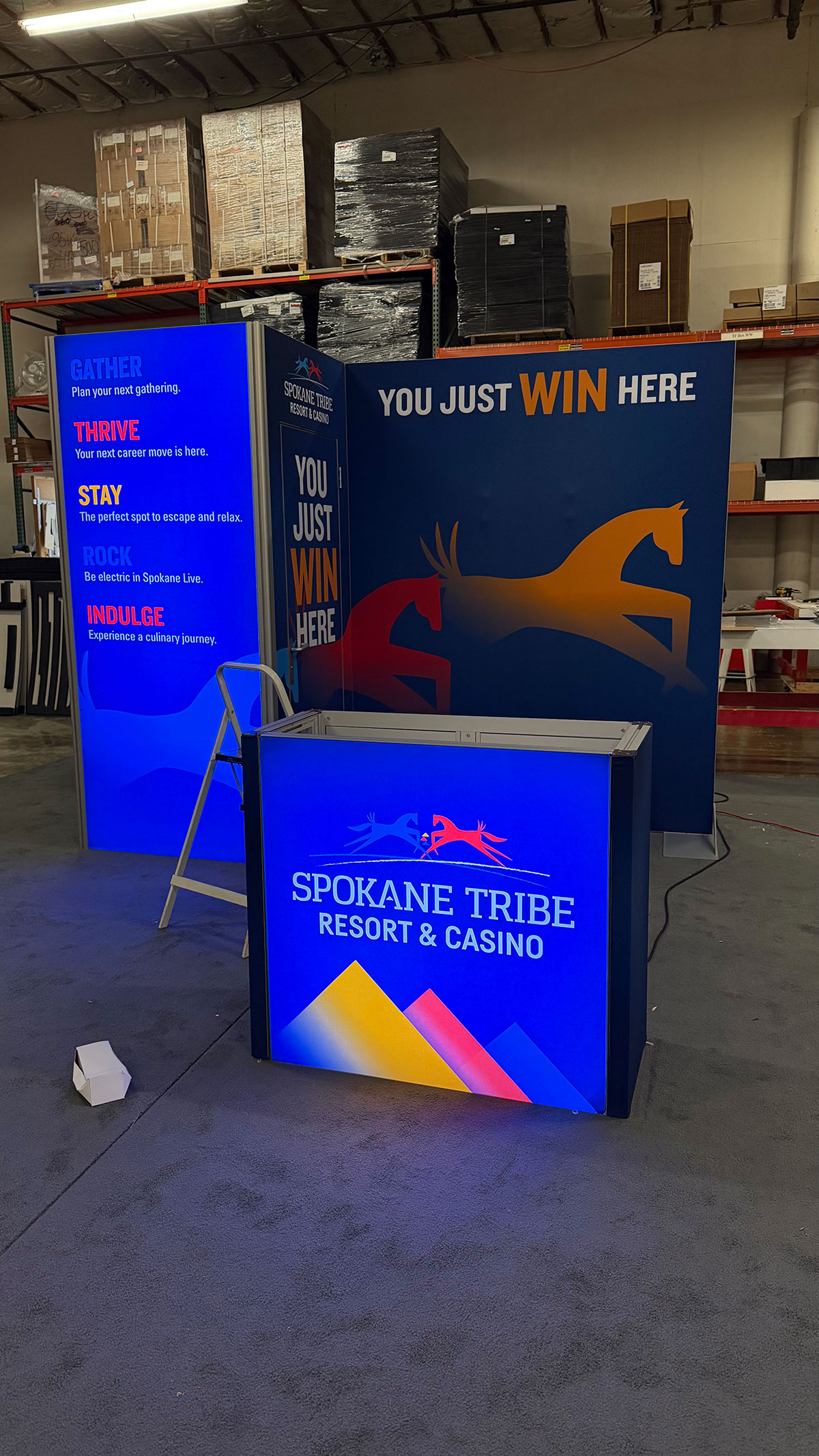 Custom Inline Exhibit with SEG Fabric Backwall, Laminated