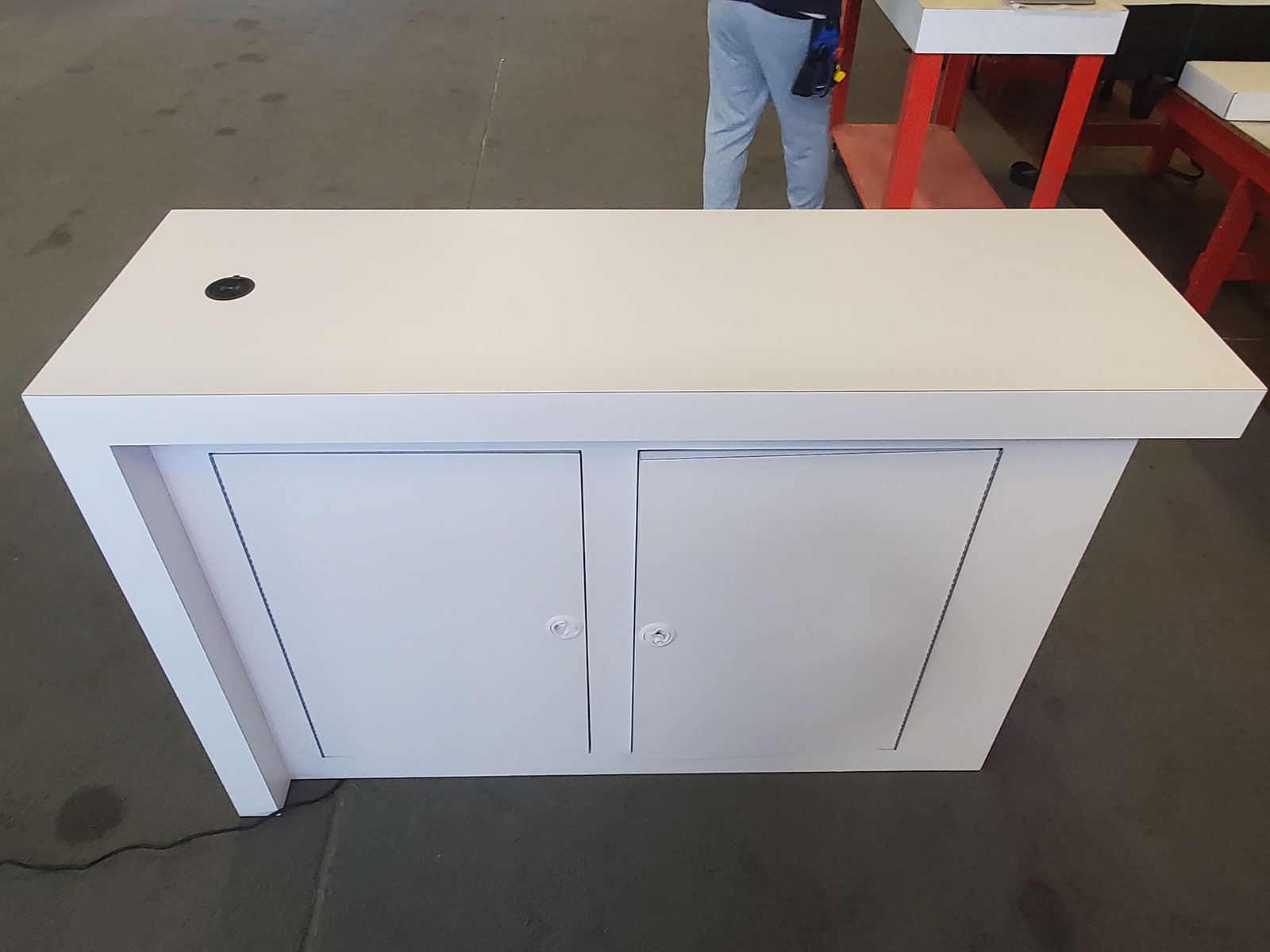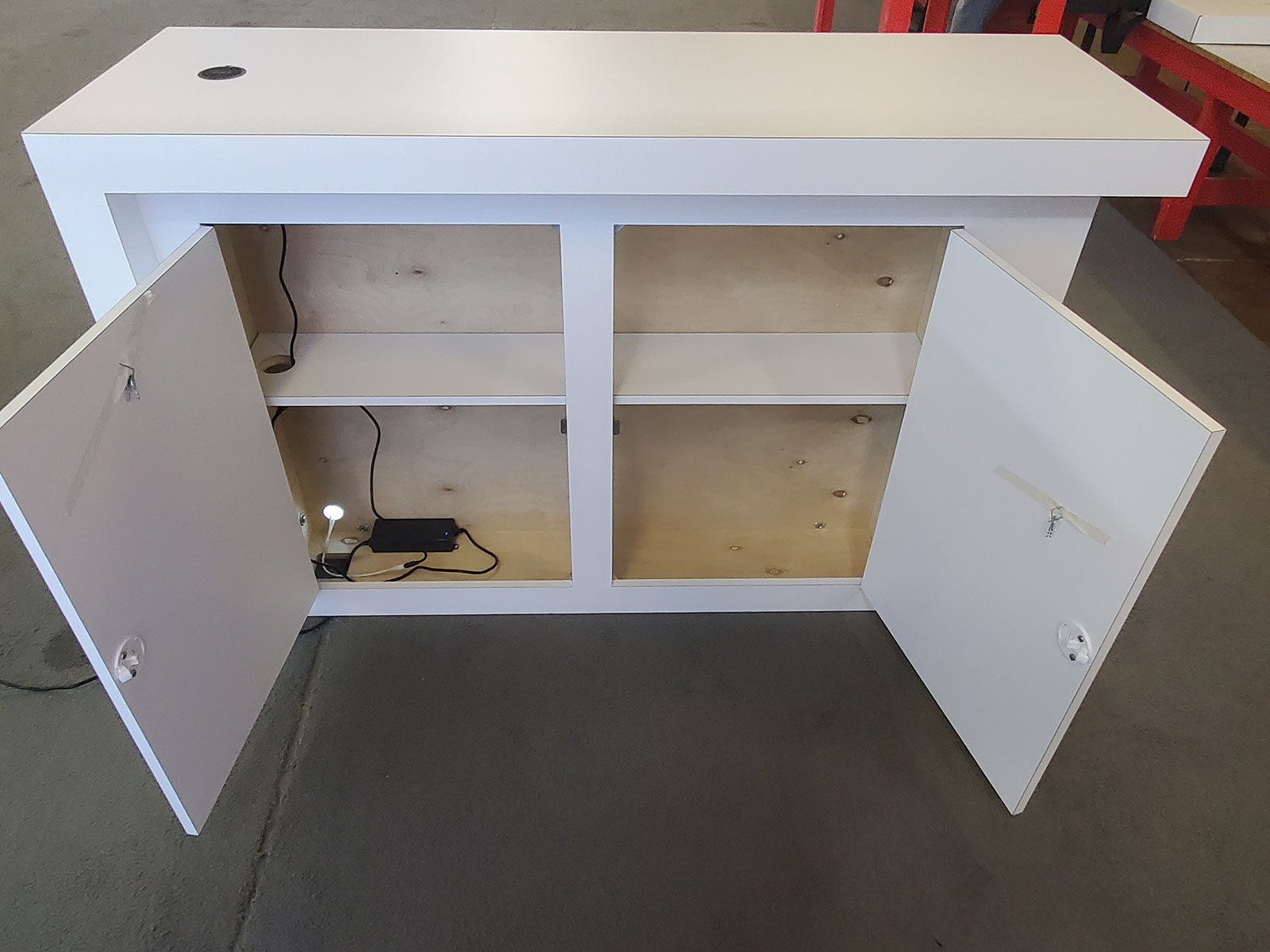 Counter with Backlit Graphic, Wireless Charging Pad, and Locking
