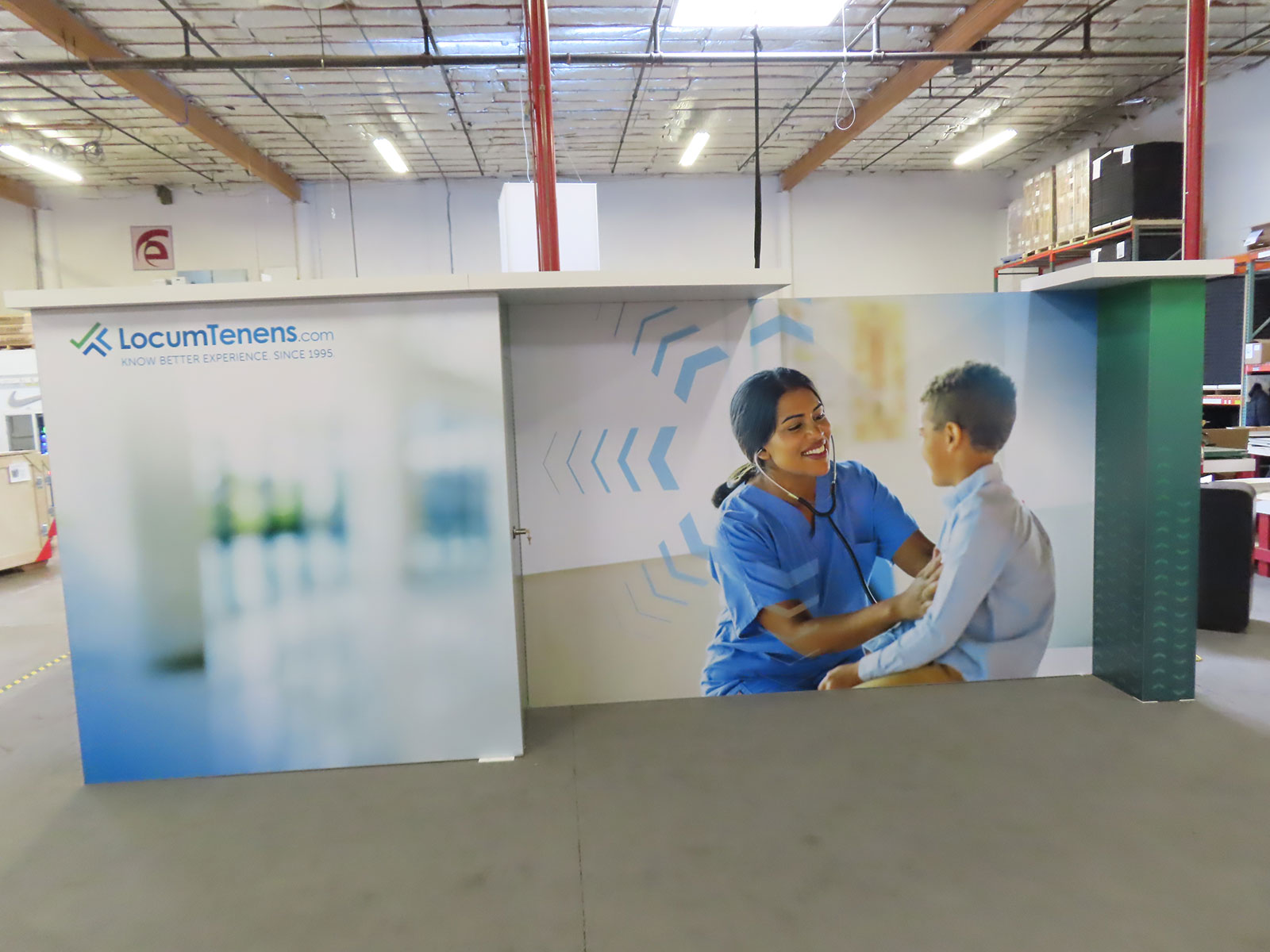 Inline Exhibit with Closet Storage, SEG Fabric Graphics, and