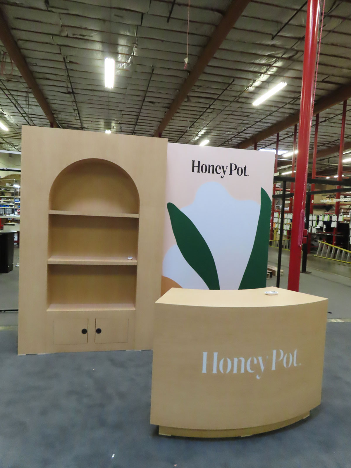 Logo Sign, Shelves, Pony Wall, Monitor Mount, and Custom Counter