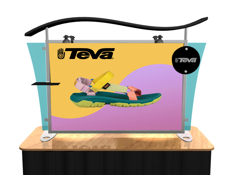 • Sacagawea: Aluminum extrusion and tension fabric table tops with accessories such as standoff graphics, headers, and shelves. Perfect for just about any situation.